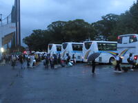 集合場所の都城運動公園野球場側駐車場は、出発・到着両日ともにあいにくの雨模様ではありましたが、保護者の皆様はもちろん、駐車場整理協力の父親委員会をはじめ、PTA三役の皆様、本校職員の見送り・出迎えで大賑わいでした。