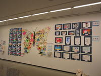 都北地区の複数の中学校の作品が、美術館の一室を華々しく輝かせていました。個人の思い思いの作品もあれば、美術部としての壮大な作品もあり、ついつい見入ってしまいました。