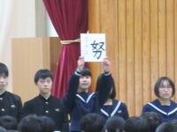 本校では2年生が将来に向けた決意や目標を、漢字「一文字」に例えて保護者の前で発表しました。