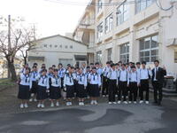 来校した高校生は「トータルエステティック科」の生徒さんで、気持ちのよい挨拶を心がけるために、日頃取り組んでいる発声練習を丁寧に指導してくれました