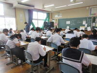 新たな祝吉中学校づくりに向けてのリーダーを選出するため、1・2年生の立候補者が自分のマニフェスト(公約)を力強く公言してくれ、全校生徒でその演説をしっかりと聞くことができました。