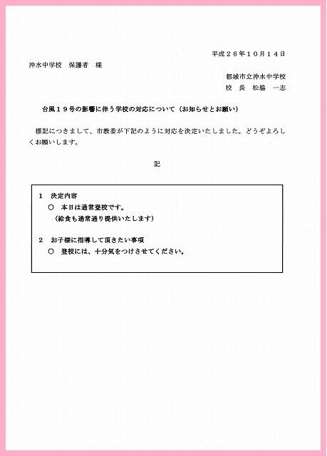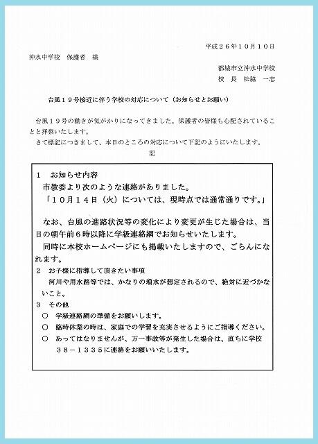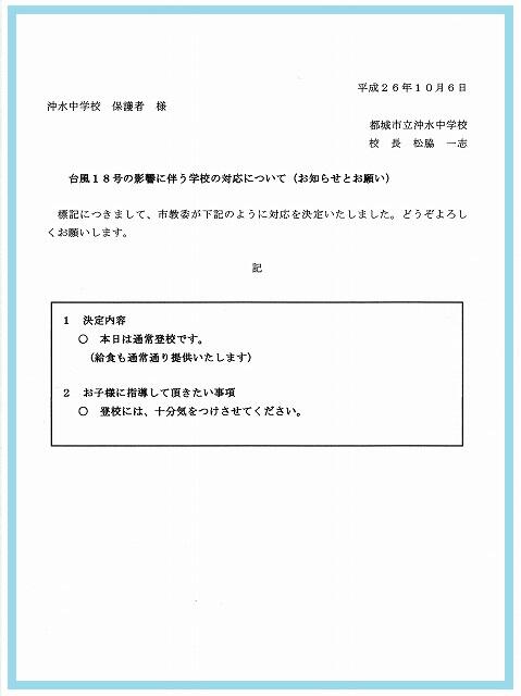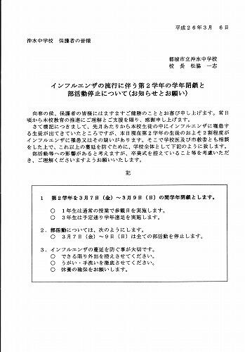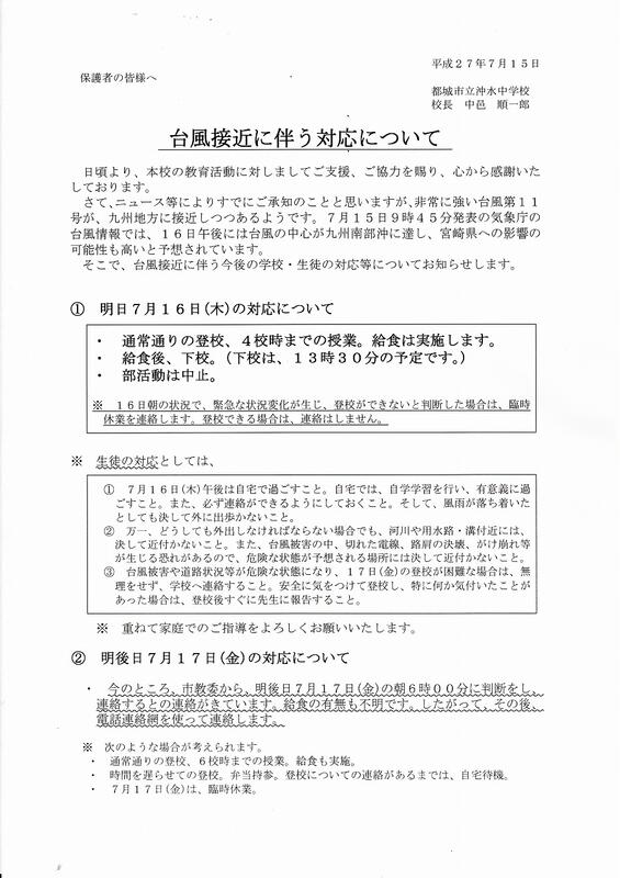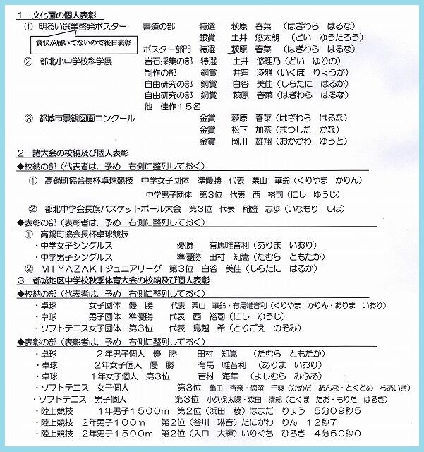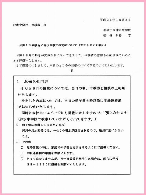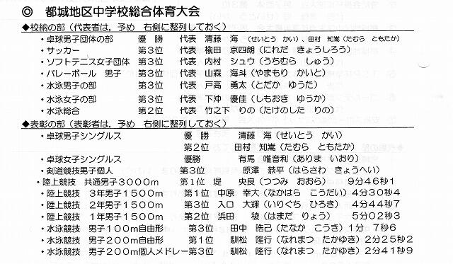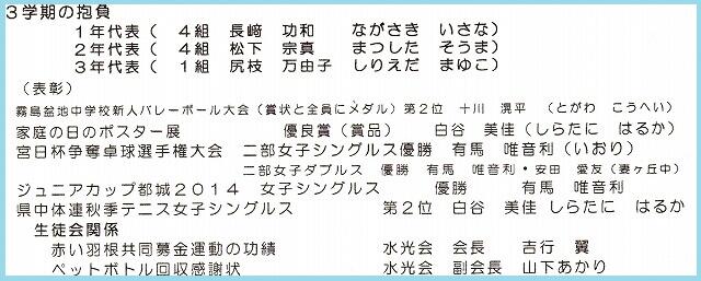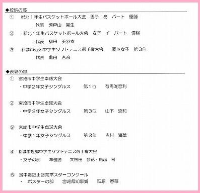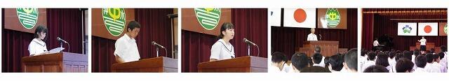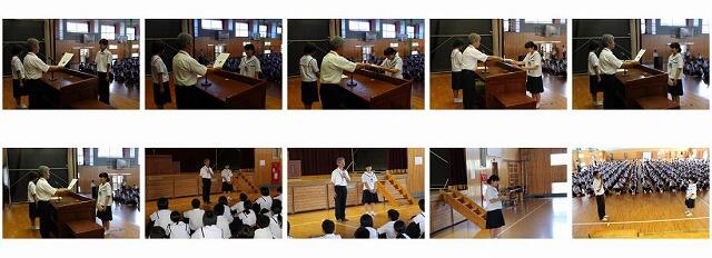 本校では毎朝、正門と東門で「あいさつ運動」を行っています。生徒会の生徒を中心に行っていますが、元気のよいあいさつに、すがすがしい気持ちになります。実は、あいさつ運動は参加する側も気持ち良くなります。保護者の皆様や地域の皆様の参加もお待ちしています。(毎朝 7:30~7:50です。) |