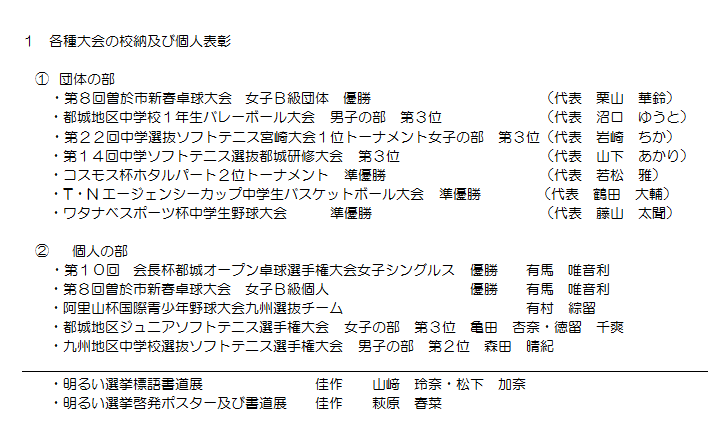 ◯ 宮崎県中学校総合体育大会 テニス女子シングルス 第3位 白谷美佳