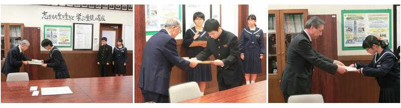 「税に関する作文」の表彰状の授与式が本校の校長室でありました。
