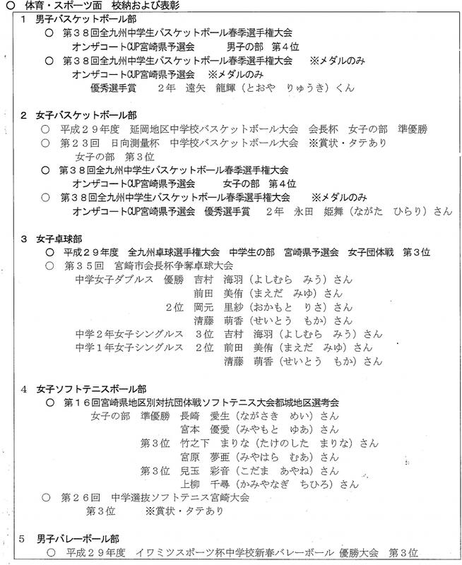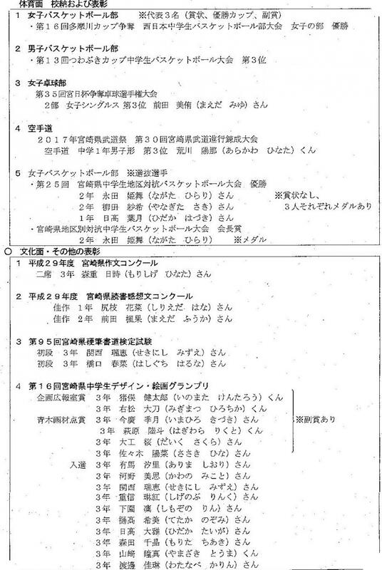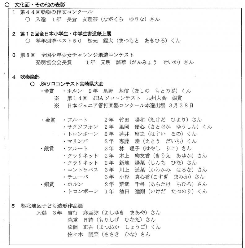 表彰集会があり、以下の生徒が表彰されました。