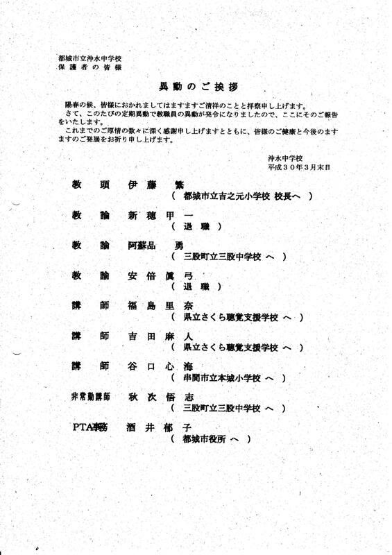 卒業生の保護者の皆様、ご列席の来賓の皆様、地域の皆様 お世話になりました。