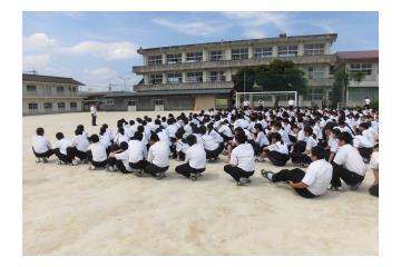 インフルエンザ対策のため、全校生徒がマスクをしての集会でした。