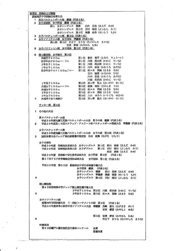 9月29日(土)から10月3日(水)の期間に県大会水泳競技と都城地区中学校秋季体育大会の多くの競技が行われました。沖水中学校の生徒もそれぞれの競技で心を一つにし頑張りました。大会結果を次にお知らせします。