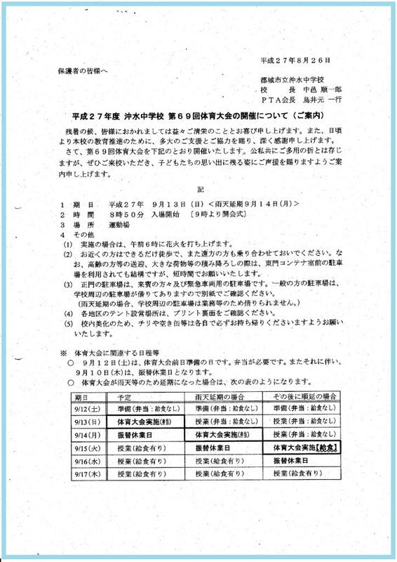 本日生徒を通してお配りした体育大会のご案内のプリントです。