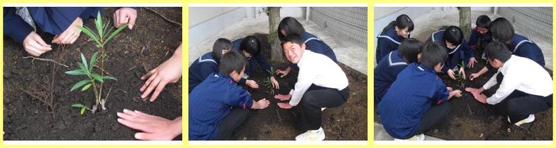 2年生が修学旅行の広島で頂いた、キョウチクトウの苗木を