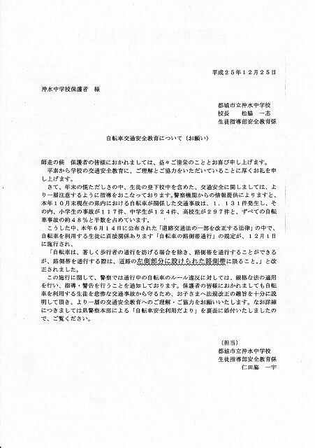 交通安全に留意してください。