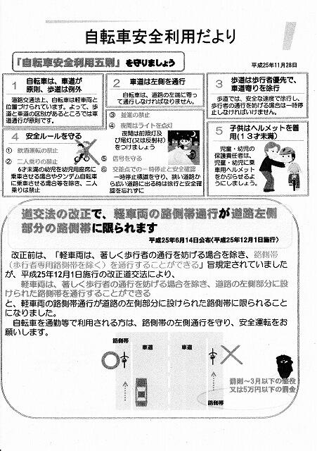 「自転車の路側帯通行」の規定が12月1日に施行され、「路側帯を通行する際は