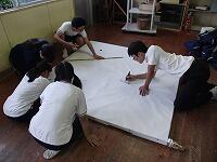 リーダーの人たちは応援練習に熱が入ってきましたが、団装飾の仕事もこつこつとがんばっています。