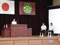 始業式では代表生徒(1年:森山介登くん,2年:安藤優奈さん,3年:西華映さん)による、2学期の抱負の発表がありました。