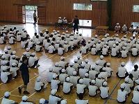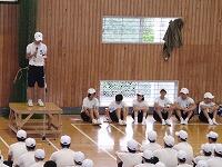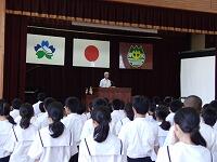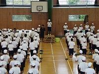 校長先生が3名の代表生徒の発表をたたえられた後に、「3年生に充実した行事を残してあげましょう。・学習面で自分を振り返る学期にしましょう。・ルールを守り規範意識を高めましょう。」と話をされ、最後に、「自分を甘やかさないように!」と呼びかけられました。