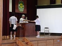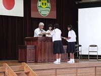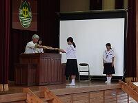 引き続き表彰式がおこなわれ、県大会の柔道個人で優勝した板垣衣波さん・宮田茄代さんの表彰と