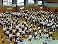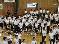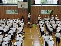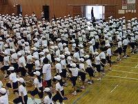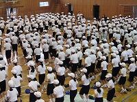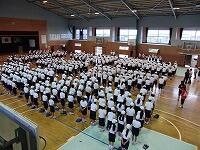 本格的な体育大会の練習が始まりましたが、あいにくのグランド状態のため、全校体育は体育館で実施されました。