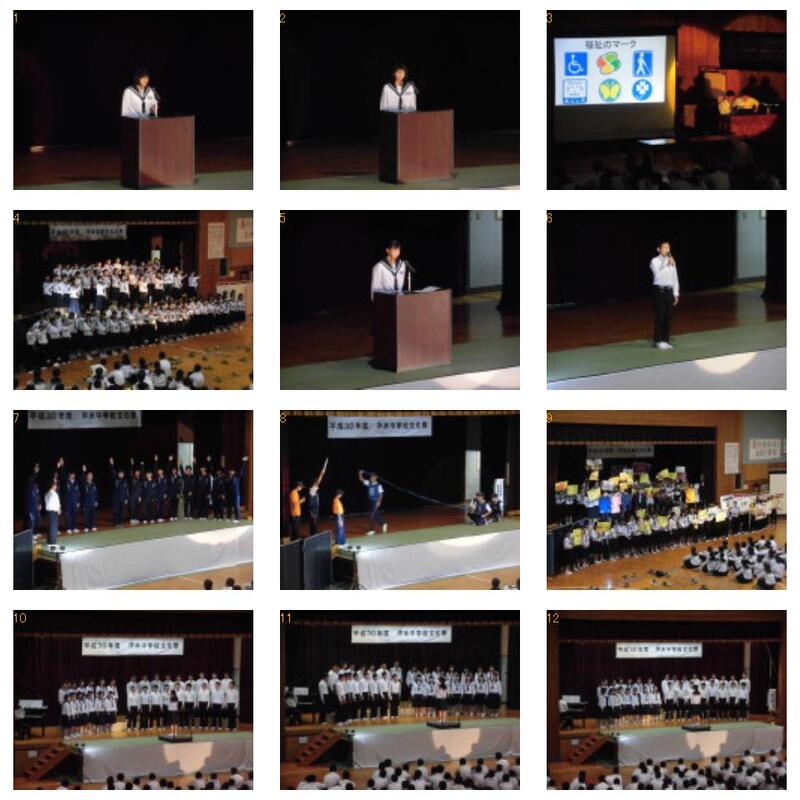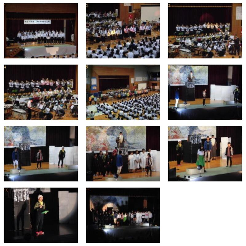 10月14日(日)、「”笑楽(えがく)~新たな1ページに色とりどりの思い出を!」というスローガンのもと、文化祭が行われました。当日は、学年や教科の作品が展示されている会場(体育館)で英語、日本語弁論や学年の発表、各学級の合唱、吹奏楽部、3学年の劇などの素晴らしい発表が行われました。合唱コンクールでは、3年2組が最優秀賞を受賞しました。都北音楽大会でも沖水中学校らしく元気で力強い歌声を響かせてくれると思います。この文化祭の成功を今後の学校生活に生かして頑張っていきましょう。