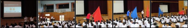 7月21日(金)、体育大会結団式を行いました。式では、スローガン発表、団の色決定、団旗授与を行いました。