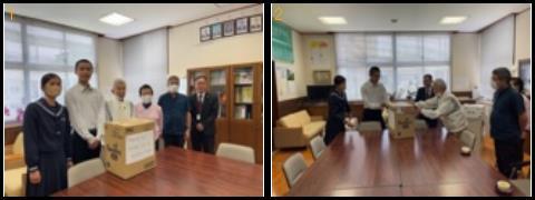 生徒会を代表して小川さんと内枦保さんが受け取り、クラブの方々との会話を楽しみました。