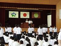 本校では毎朝、正門と東門で「あいさつ運動」を行っています。生徒会の生徒を中心に行っていますが、元気のよいあいさつに、すがすがしい気持ちになります。実は、あいさつ運動は参加する側も気持ち良くなります。保護者の皆様や地域の皆様の参加もお待ちしています。(毎朝 7:30~7:50です。) |