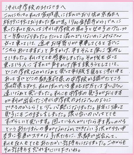 11月27日に以下のお手紙が、宮城県仙台市の女性の方から届きましたので