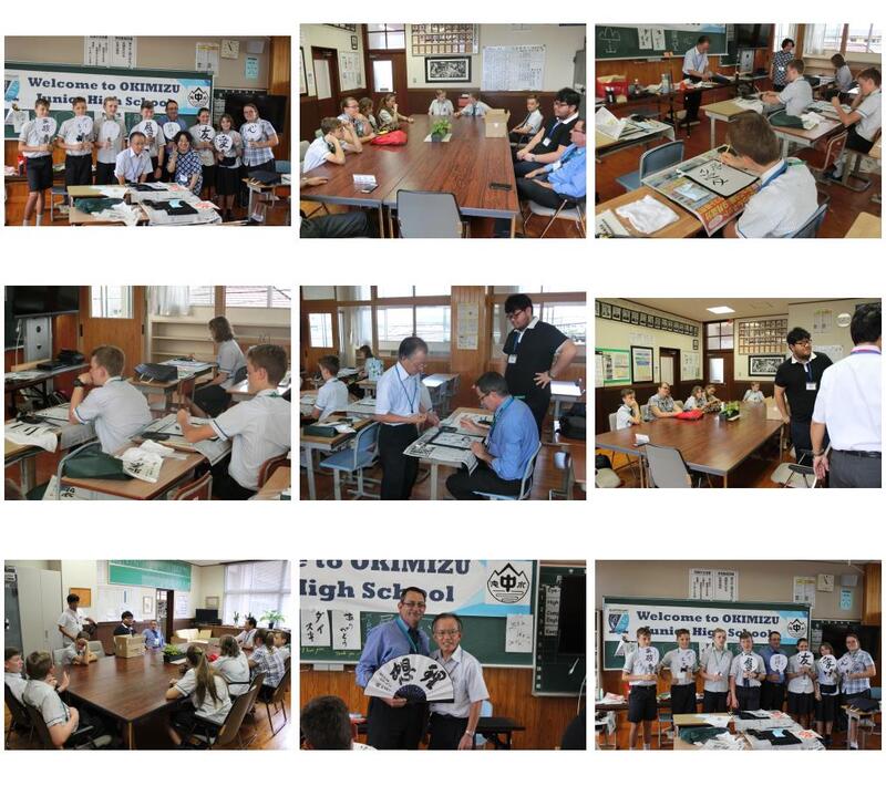 本校の生徒7名の家庭にホームステイした7名の生徒が、午前中は「書道」に挑戦しました。