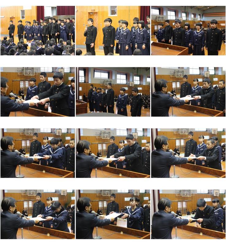 1・2学期に学習や学級や部活動で努力が認められた生徒へ「努力賞」の表彰もありました。