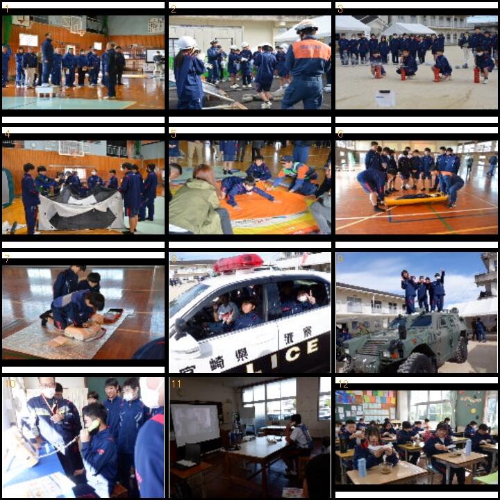 11月24日(日)に本校において都城市総合防災訓練が実施されました。沖水地区自治公民館連絡協議会、本校及び防災関係機関等の参加を得て、自助、共助に関する実動・体験型の訓練を行いました。
