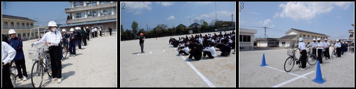 グラウンドでは、全生徒が一旦停止・左右確認のやり方を実際に自転車に乗り確認しました。