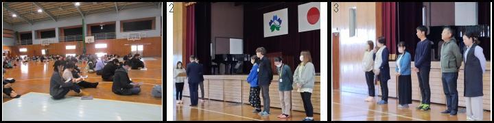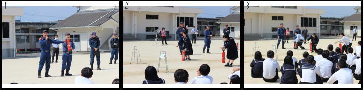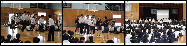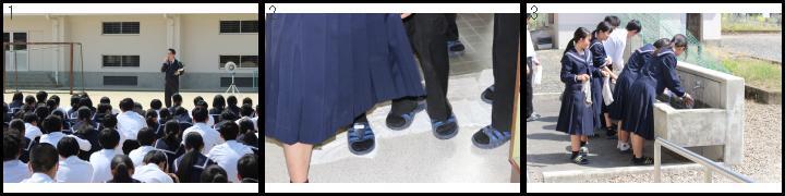 消防訓練も学年代表者(3年生2名)、職員(3名)が全生徒の前で使用方法を実演してくれました。また、生活委員がグラウンドから校舎にあがる時にスリッパ裏をふくための準備・片付けを行ってくれました。誰かのために、見えないところで活動してくれる生徒がいます。あらゆることに感謝の気持ちを持てるようにしましょう。