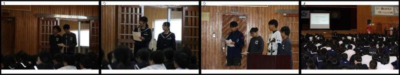 生徒会長が「年間の様々な場面で校内をきれいに清掃して、皆が過ごしやすい環境をつくります。」とお礼の言葉を述べました。