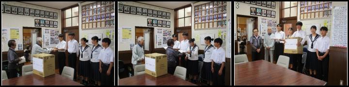 4月30日(水)沖水地区公民館長様と沖水地区高齢者クラブの会長・副会長様が来校され手作りの雑巾150枚を寄贈してくださいました。