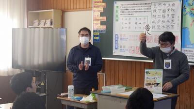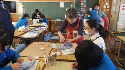 高齢者クラブの方々を中心とした学校支援ボランティアを講師としてお迎えして1年生が昔ながらの伝統的なしめ縄づくりを体験しました。講師の方々が手間をかけて下準備をしてくださった稲藁を束にしたものを、ねじりながら太い縄を編んでいました。房の部分や扇などの飾りを縄につけて完成しました。今年は、下準備を多くしてくださっていたため、きれいなしめ縄を昨年度より早く作り上げることができました。講師の皆様、準備から指導までありがとうございました。