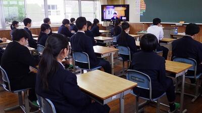 2学期の終業式が行われました。今週に入ってインフルエンザの罹患者が激増したため、オンラインで実施しました。2学期は行事も多く、成長したり頑張ったりしたことが多かったようで、学年代表の発表はどの学年も内容が多く素晴らしい発表をしていました。校長先生からは、「感動」「感激」「感謝」の1年であったことや、人と比べることではなく自分自身と向き合って「がむしゃらに、ひたむきに、精一杯」頑張る姿も見られたので今後も頑張っていって欲しいとお話がありました。来年から校時程が変更になります。新しい年を変化に対応しながら充実したものにしていけるといいですね。