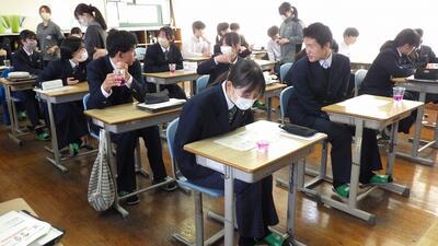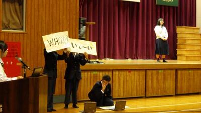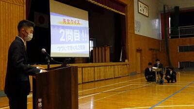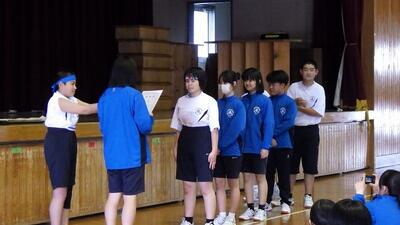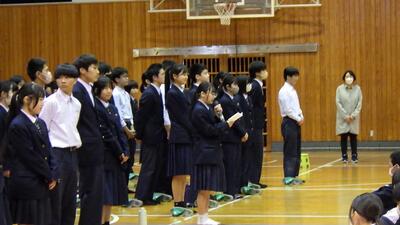 生徒会主催のクラスマッチと送別行事が行われました。クラスマッチは、男子がドッジボール、女子がバレーでした。どのクラスも、ゲームの前に円陣を組んで士気を高め、競技中は声を掛けて励まし合っていました。送別行事では、イントロクイズや先生クイズ、未成年の主張などをしました。楽しみながらも3年生への感謝の気持ちや励ましの言葉などが様々なところに織り込まれた温かい行事でした。企画をしてくれた生徒会役員の皆さん、お疲れさまでした。