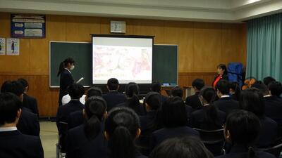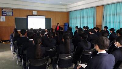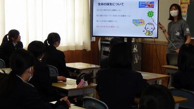 ほのか助産院の助産師をお招きして、命の授業を行いました。様々な人に恵まれて生まれてきたこと、人は一人では生きていけないから周りにSOSを出すのが大切であることなど、命の誕生の現場に向き合ってこられた講師の先生ならではの話を生徒たちは真剣に聴いていました。助産院の先生、命の現場で大変お忙しい中、授業をしてくださりありがとうございました。