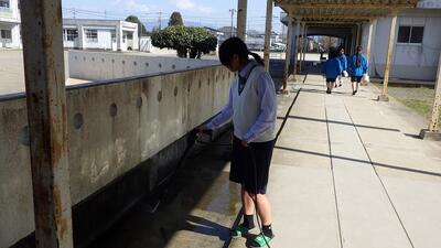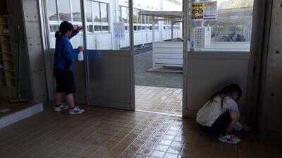 3年生が校内中の奉仕作業をしてくれました。生徒たちが奉仕作業したほうがよいと考える場所をアンケートで集約し、学年生徒会で割り振りをして作業をしました。日頃掃除できない窓を拭いたり、特別教室の片づけをしたりして、学校中がとてもきれいになりました。3年生の皆さん、ありがとうございました。
