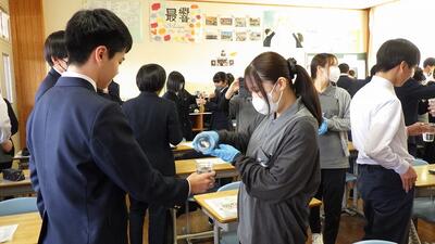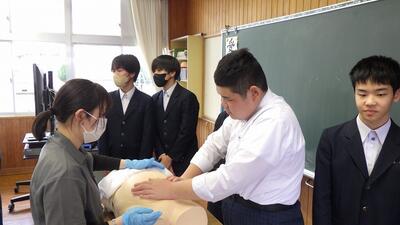 県立看護大学の方々をお招きして、ピアカウンセリングの授業を行いました。命の確率についてクイズで問われたり、性感染症の実験をしたりして、生徒たちは楽しそうに看護学生の授業を受けていました。後半は、自分のライフプランについて考えている間に、赤ちゃんの実体模型を抱いたり、妊婦の疑似体験をしたりして、普段行うことができない貴重な体験をさせてもらいました。体験をしながら、自分の誕生への感謝や今後の人生について深く考えさせられたようです。県立看護大学の皆様、素晴らしい授業をありがとうございました。