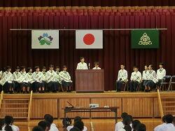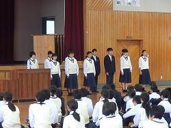 新しい生徒会執行部並びに専門委員長・副委員長に、任命証が渡され、正式に新生徒会がスタートしました。これまで学校を引っ張ってくれた3年生の生徒会役員の皆さん。本当にお疲れ様でした。ありがとうございました。新生徒会役員の皆さん。3年生に負けないよう、がんばってください。