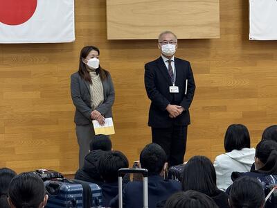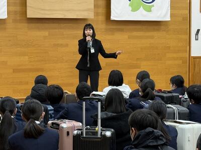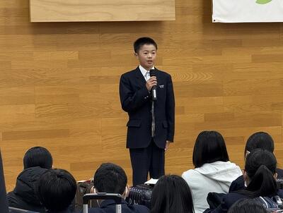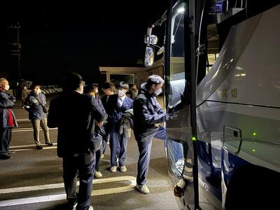 星の輝く寒空の下、2年生が2泊3日の修学旅行に旅立ちました。これまで2学年職員や実行委員、班長を中心に、広島での平和学習、2日目の京都班別自主研修など様々な準備をしてきました。実行委員長の挨拶では、先生や保護者への感謝の言葉とともに、充実した旅行にしたいと述べていました。多くの保護者に見守られる中、元気に生徒たちはバスに乗り込んでいました。