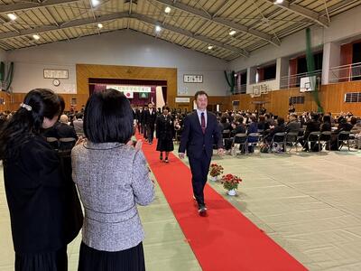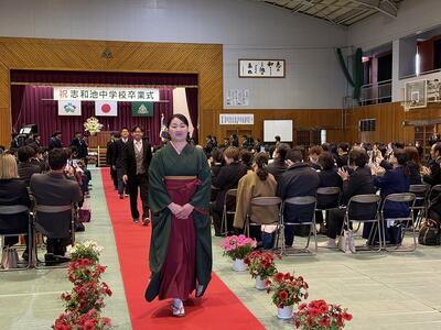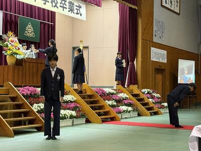 第79回卒業式が行われました。天気が良く、冷え込んだ朝でしたが、氏名点呼では大きな声で返事をし、卒業式の歌では男女ともに体育館を響かせる素晴らしい歌声を聴かせてくれました。校長式辞では、考える力を養ってほしい、挑戦して失敗してもそれを知っていることが他の人へのやさしさに繋がるので頑張っていって欲しいとエールが送られました。PTA会長からは大震災で亡くなった方の話から、いつでも伝えられると思わず、感謝の気持ちを伝えてほしいと話がありました。笑顔いっぱいで退場していった卒業生。これからの人生も笑顔を忘れず元気に過ごしていってください。