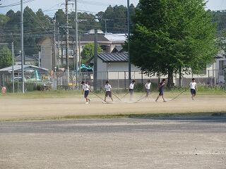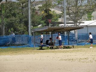 グラウンドは今日も風が強く、時折、砂ぼこりが舞い上がっています。