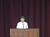 生徒代表の言葉は、1年生 前廣玲奈(まえひろ れいな)さん、2年生 巣立千幸(すだて ちゆき)さん、3年生 内村歩優(うちむら あみゆ)さんが 2学期の抱負を述べていました。