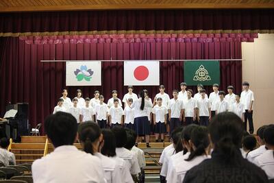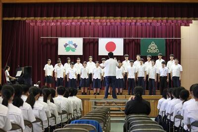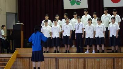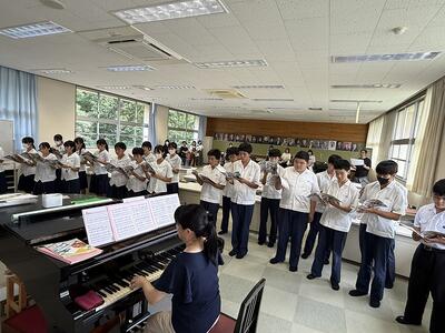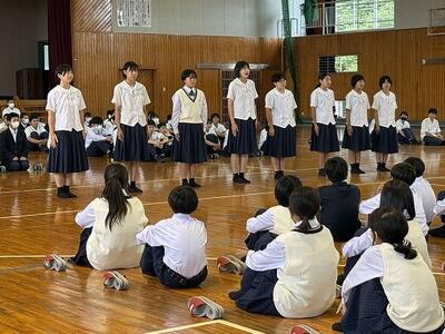 10月10日に行われる合唱コンクールのリハーサルを各学年で行いました。合唱コンクール実行委員が初めにリハーサルの流れを話し、当日の発表順に歌いました。その後、実行委員が良かったことや改善したほうが良いことについて発表し、各学級で考えて練習をしました。本番まであと1週間。最後まで学級で団結して練習し、素晴らしい合唱が披露できるといいですね。