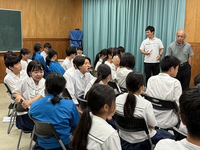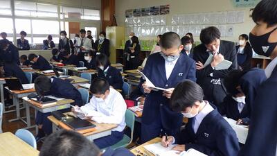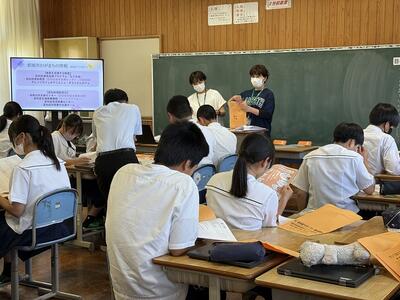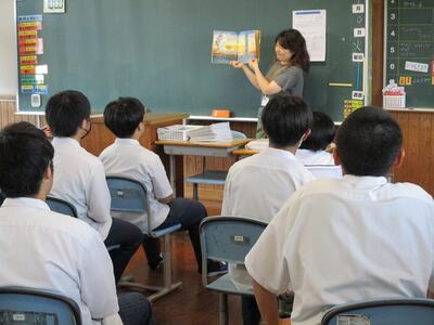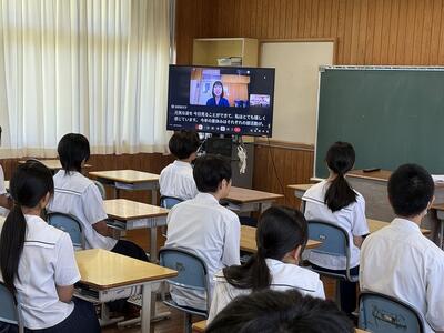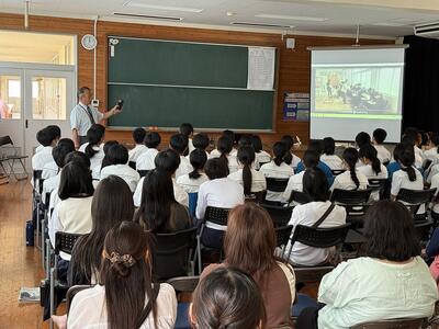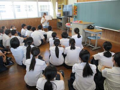 3年生と保護者を対象に高校説明会が行われました。都城地区の公立・私立高校10校に来校していただき、パンフレットや動画などの映像をもとに各校の特色を説明していただきました。生徒たちは、どこの高校のオープンスクールに参加するか悩みながら聞いていました。1年生では志和池地区の企業2社と科長神社の方に来校していただき、仕事内容だけでなく、どのような思いで仕事をしたり地域に貢献したりしているか、逆境をどのように乗り越えたかなど様々な話をしていただきました。志和池地区で頑張っている企業や団体のことをもっと知っていきたいと思う講話でした。高校の先生方、地域の企業・団体の皆様、ありがとうございました。