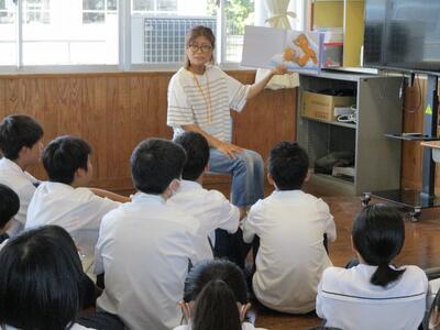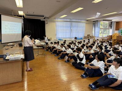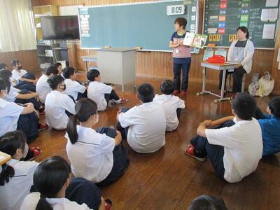 読み聞かせボランティア「志和っ池」の皆様による2学期最初の読み聞かせが行われました。今回は、疲れを癒したり早口言葉で気分が上がったりする内容の絵本が読まれていました。また、月食で話題となった月に関する写真が本になったものも読まれていて、生徒たちは熱心に話を聴いて絵を見ていました。ボランティアの方々から、「幼少期から絵本の読み聞かせを経験しているので生徒たちの聴く姿勢がプロだ」とお褒めの言葉をいただきました。ボランティアの皆様、ありがとうございました。