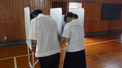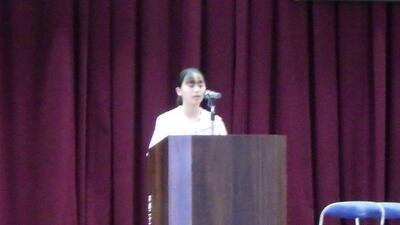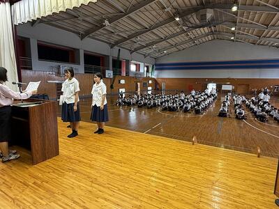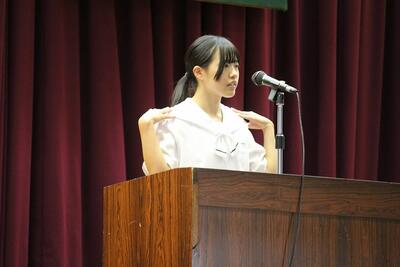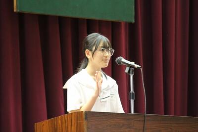 生徒会立会演説会と選挙が行われました。初めに、校長先生が、立候補者に「学校をより良くしたいという強い意志をもって立候補してくれたことを誇りに思うこと」、他の生徒に「未来の生徒会を決定する最も重要な有権者であるから『この人と一緒に学校を創っていきたい』と思える人を選んでほしい」と話をされました。校長先生の話に刺激を受けたのか、立候補者はそれぞれしっかりと自分がどのような学校を創っていきたいかを伝え、その想いを生徒たちはしっかりと聴いていました。開票の結果は来週発表の予定です。