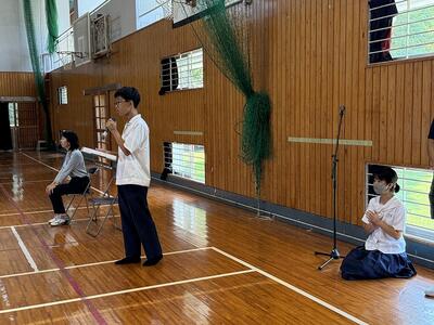 学習発表会が行われました。開会式で、先日の志和池地区戦没者合同慰霊祭で発表した平和のメッセージの群読がありました。その後、英語暗唱・弁論大会の発表がありました。身振り手振りを付けながら流暢に英語で話していて、皆、息を飲んで聴いていました。合唱コンクールは、3年生が、人数の多い1・2年生に負けじと、響きがありながらも熱のこもった合唱を披露しました。最後に、吹奏楽部が会場全体を大いに盛り上げて学習発表会が終わりました。