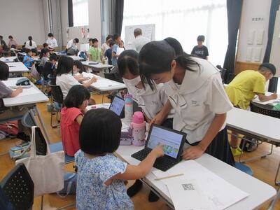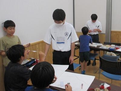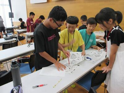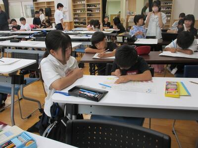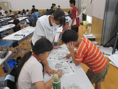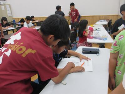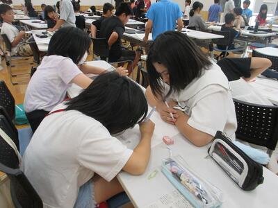 寺子屋サロンが23日から31日まで志和池地区公民館で行われています。志和池中からはのべ160名程のボランティアが参加する予定です。25日には、勉強のサポートの後、絵描きやブンブンごまづくりの手伝い、間違い探しの丸つけをしていました。まちづくり協議会や民生委員児童委員の地域の皆さんが入っているものの、小学1年から6年まで90名程の小学生がいるため、中学生のサポートがあって助かったとおっしゃっていました。地域の方に感謝していただいてよかったですね。